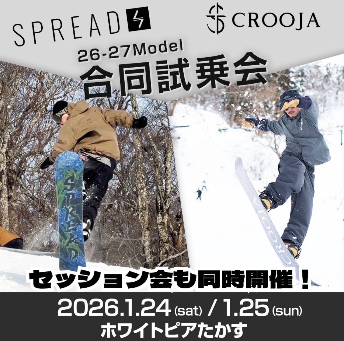グラトリ界を支える2大巨頭「SPREAD」「CROOJA」のセッション会と試乗会が2日間開催されます!